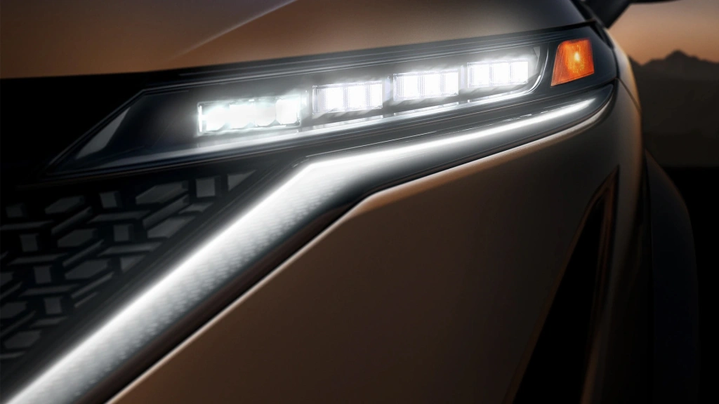 Nissan Ariya — потрясающее воплощение нового видения Nissan. Единая линия силуэта заменяет сложные контуры. Новые тонкие светодиодные фары прекрасно освещают дорогу ночью и остаются незаметными днем.